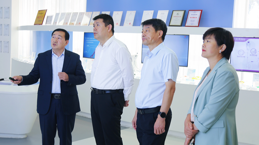 山東省藥監(jiān)局醫療器械處處長吳世福,第三分局局長任曉楠陪同調研。